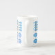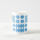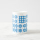 En chic benporslinkaffemugg, med ett mönster av traditionella walesiska Tapestrymotiv i ljusa blått på en vitbakgrund. Denna mönster ska passform som all mugg storleksanpassar.
