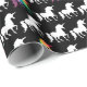 Mönster för Unicorn för svart- & vitvattenfärgregnbåge som slår in papper. Ursnygga vattenfärgpenseldrag av rött, gult, orange, görar grön, blått och lilor i en unicornsilhouette spridd mellan vitunicornsilhouettes. Regnbågeunicorns betonar detta roliga svartvita unicornmönster som slår in papper. Unik och magical design för unicornälskare.
