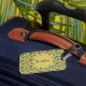 En dominerande grönt med röda hjärtan och mönster fyllda hjärtan. Det här är en söt och öga-katchistisk design kommer att göra bagageutseendet på transportören bälte. Anpassa den med din familj namn och anslut den till din resväska!