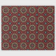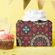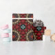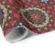 En invecklad, kaleidoscopemandala i rika röda och kungliga lilor som betonas i guld, tonar, i en överlappning, repetitionmönster. Formar i designen är från fotograferar av de invecklade designerna av målat glasskyrkafönster. Färgerna kommer från skruden av visad änglar och saints.