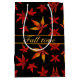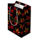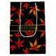 Den här designen har ett vackert höst löv-temat mönster. Utformningen omfattar olika löv i skuggor av orange och rött. Mönster ställs in mot en skarp svart bakgrund, vilket gör att rik färg och detaljerade illustrationer kan framträda. Den här designen fångar det centrala i fallsäsongen och framkallar värme-, skörd- och festliga firande.