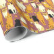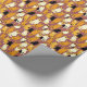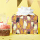 Pappra i en lekfull mönster av stiliserade katter i varma skuggor av ingefära, kräm, svart och brun på en karamellbrun bakgrund. Varje katt har sina egna söta uttryck och markeringar, med lite tass avtryck spridd över hela kroppen.