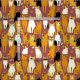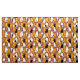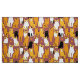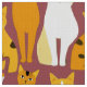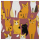 Fabric i en lekfull mönster av styliserade katter i varma skuggor av ingefära, kräm, svart och brun på en karamellbrun bakgrund. Varje katt har sina egna söta uttryck och markeringar, med lite tass avtryck spridd över hela kroppen.