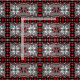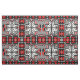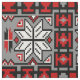 Anpassning av en traditionell amerikansk filt som väver mönster i rött, grått, vitt och svart. Utformningen har åtta sidade snöflingor som fokuspunkter som ramas av steg-mönster-rutor.