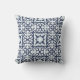 Lägg till en summerisk Medelhavstvist till din poolside eller din tålmodiga dekoration med vår chic marin och vit mönstrad utomhus dekorativ kudde. Konstruktionen har en tunn spansk mönster i marinblått och himlar blått mot vit bakgrund. Mönster upprepar sig på baksidan.