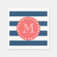 En liten, fetstilt, marin blå och vit rand mönster med ett modernt typsnitt, på en korallcirkeletikett, banderoll, ram med en prickad vit linje gräns. GraphicsByMimi©-Trendig, snyggt, modernt, linjer mönster som du kan anpassa med ditt monogram för henne. Använda mallen fält om du vill lägga till ditt första monogram eller brev eller markera "anpassa det" om du vill ha fler redigeringsalternativ, t.ex. lägga till ditt namn, din text eller ditt foto för att göra din egen unika personlig, en av ett slag-anpassad design. Annan tillgänglig färg.
