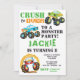 Monster Lastbil Barns födelsedag Party Inbjudningar