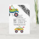 Monster lastbil-pojken födelsedagsfest inbjudan med ett förenklat svart och vitt färg-schema anpassade till dina evenemangsspecifikationer.