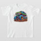 Monster lastbil kör genom lera. Barns färgstarka T-skjorta. Unisex.