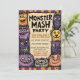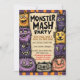 denna roliga och fantasifulla bild är en Halloween-inbjudan mall med de feta orden "Monster Mash-fest" högst upp. Designen är inramad av en samling söta, ludna monster med olika uttryck, utförda i en lekfull, handritad stil med en orange och lila färgpalett. Denna bild är perfekt för dem som vill ha en spöklik men lättsam och kreativ design för sin högtidsfirande.