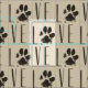 Fabric med en upprepande mönster av en söt illustration av ett husdjurspassat i brunt med ett grymt stil. I brev anges ord "Kärlek" med tassarna i ställe i brev "o". Fantastisk för djurälskare.
