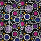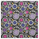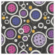 Fabric med färgfulla betlebollar och vita cirklar på svart bakgrund. Perfekt som gåva till en populär pickleball-spelare.