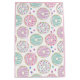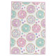 Presentförpackning med ett roligt och aptitligt mönster. Illustration av pastellrosa och gröna donuts med strössel och glasyr.
