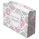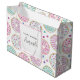Presentpåse med ett utsökt roligt mönster. Illustration av pastellrosa och gröna munkar med strössel och glasyr.