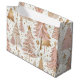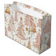 Elegant mönster med känslig rosa Julgranar, försedd med roterande dekorationer i ro guld på mjuk krämbakgrund. Perfekt för helgdag presentväska.
