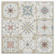 Fabric med en serie av nio (9) olika plattor av neutralt-stil i färgad, mosaic mönster.