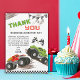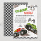 Send roaring thanks after the party with this fun Monster Truck Birthday Thank You Card, designed for kids who love big tires, racing tracks, and action-packed celebrations.This exciting thank you card features colorful monster trucks racing across a rugged dirt track with checkered racing flags and bold racing graphics. The playful design captures the thrill of a monster truck birthday party, making it a perfect way for kids to thank friends and family for celebrating their special day. The front of the card includes a cheerful “Thank You for Smashing & Crashing into My Party” message that perfectly matches a monster truck theme. The playful trucks, racing banners, and checkered pattern add a dynamic motorsport feel that kids absolutely love. The inside message is easy to customize so you can add your child’s name and personalize the note to guests who brought gifts and joined the celebration. Perfect for Monster truck birthday party thank you cards, Kids racing themed birthday parties, Monster truck party favors, Monster truck themed celebrations or Boys birthday racing party. Pair this card with matching monster truck invitations and party decorations to complete your racing-themed birthday celebration.Thank you for stopping by. If you have any doubts regarding customization pls message me here or contact me at arteartz0588@gmail.com.