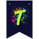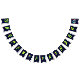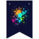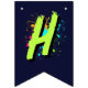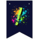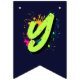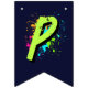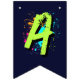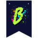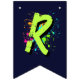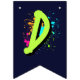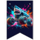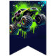 Decorate your child’s party with this personalized monster truck birthday bunting banner featuring a bold green monster truck, a fierce blue shark monster truck, and vibrant neon paint splashes. Perfect for a boys monster truck themed birthday party, this custom name “HAPPY BIRTHDAY” 16-flag banner adds a fun and coordinated touch to your monster truck party decorations. Designed in 5.5" x 8" vertical flag format with V-shaped bottoms, it pairs perfectly with matching monster truck party supplies, plates, cups, hats, and favor bags for a fully themed celebration.