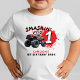 Gör dig redo att slita, rida och smadra på en högoktanig 1-årsfest som passar din lilla racerförare. Den här monster truck-tröjan är ett perfekt tillskott till en pojkes födelsedagsfest som är packad med action, smuts och rytande motorer. Perfekt för 1-årsfirande teman som krossfirande, monsterjam eller stora hjuläventyr. Anpassa detaljerna för att starta motorerna för en fest som gästerna inte kommer att glömma.