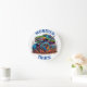Monster Truck Vägglampa Klocka. En livfull monstertruck som kör genom lera i en tecknad karikatyrstil, med överdrivna och lekfulla uttryck, digital illustration med djärva färger och fantasifulla detaljer, inspirerad av klassiska 80-tals tecknade serier