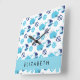 Mönster, valar, blåvalar, ditt namn fyrkantig klocka