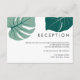 Utkastad för att samordna med vår tropiska Monstera bröllopssamling, har det här eleganta mottagningskortet med botaniskt tryck två monstera blad i olika gröna nyanser som prydnad ovanpå det önskade meddelandetexten. Baksidan på korten har en samordnad mintgrön färg. Finns även i gula nyanser. Använd mallfälten för att anpassa med din mottagningsadress, tid och adressinformation. En modern och elegant design för sommarbröllop eller tropiskt bröllop. Denna design är en del av en samling, besök vår butik för matchande produkter. För specialbeställning, vänligen kontakta oss på citronelladesign@gmail.com