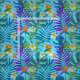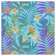 Färgfulla tropiska löv av handflatan träd, monstera, plumeriablommor och paradisfåglar mot himlar blå bakgrund. Du kan ändra bakgrunden färg genom att klicka på knappen "Anpassa den!". Obs! Där kan du också ändra storleken på plattorna för att justera hur stor teckning du behöver.