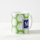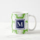 Monstera Löv Grönt Navy Modern Monogram Coastal Kaffemugg