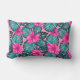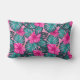 Monstera löv och Hibiscus Teal och Rosa på Rosa Lumbarkudde