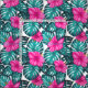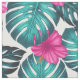 Monstera Löv och Hibiscus, Teal Rosa on White Tyg