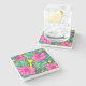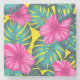 Monstera Löv och Hibiscus, Teal Rosa på Gult Stenunderlägg