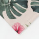 En pulserande vattenfärg mönster med lush Monstera löv och rosa hibiscus blommor, accentuerade med guldtropiska blad. Perfekt för att få en bit av paradiset till vilket utrymme eller vilken produkt som helst.
