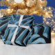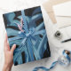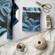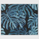 Konstruktion av montropisk växt/husplanta med stora blå löv i svart bakgrund. Sömlös vintage som upprepar mönster.