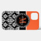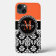 Svart och vitt skugga med Monogramdesign och Orange accent Färg. Anpassa med ditt namn och monogram. Damask Gallery c