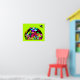 en rolig poster med en vänlig grupp av främmande monstertecken. Inställningen har ett kosmiskt tema. Man kan se planeter med ringar och kratrar, rymdskepp som flyger runt osv. Färg är både livligt och ljust, såväl som mjukt och nyttigt. Sätt på en fetstilt grön bakgrund.