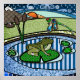 Det här är inte din vanliga fredliga scen, denna lilla grodan består av flera olika mönster, liksom världen omkring honom. Borta är de tråkiga enfärgade tonerna, allt är ett mönster! Perfekt för ett barns sovrum, ett vänligt klassrum eller för den alldeles nyfödda barnkammaren.