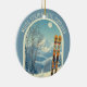 Ornament from a wonderful skiing holiday in the beautiful mountains of Mont Tremblant Quebec Canada. This Ornament features an arch with a stunning blue-grey mountain landscape and retro ski boards in an orange tribal pattern in the foreground. The rest is in a lovely light blue tone with the location lettering in a modern font. The design is a lovely combination of retro and modern, and I hope you enjoy it!