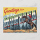 This dynamic, retro-style design features the classic "Greetings from Montana" typography set against a scenic backdrop of snowy mountains and pine forests. The centerpiece is a striking image of a cowboy on a rearing horse, symbolizing the state's rich Western heritage, ranch life, and the vast wilderness of Big Sky Country. Perfect for fans of vintage travel posters, retro artwork, the Rocky Mountains, and the spirit of the American West. This makes an excellent souvenir or gift for locals and visitors.