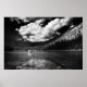 Ett svart och vitt foto av en man som fiskar i Montana-berget sjö. Copyright (c) 2017 Karin Hildebrand Lau