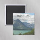 Dekorativ, fyrkantig magnet med en scenbild av Montana-landskapet i Glacier National Park som omfattar norra Rockies och en färgstark, tealblå sjö. Endast tillgängligt i kvadratisk form.