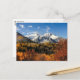 Ett vykort med ett hisnande Utah-landskapsfoto av Mt. Timpanogos i Fall. Ett vackert snö-skyddat berg omgivet av hösten träd med löv i varma gulter och golder och ett sjudande blå himmel med vassa moln.