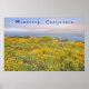 En levande fält av vilda blommor från gult sträcker sig mot horisonten och skapar en häpnadsväckande kontrast mot det blå havet och grumliga himmel vid Monterey Peninsula, Kalifornien. Blommorna blommar i fullt, deras gult petaler skapar ett hav av färg. Kusten är synligt i bakgrunden, med klippiga utstryk och det mjuka vågarna av havet.