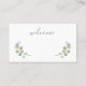Fira din speciella dag med det här vackert vattenfärgade eucalyptus grenery bröllop-platskortet, med titeln "Welcome" (välkommen) i modernt skript, dekorerat med mjuk vattenfärgseukalyptus på vit bakgrund.