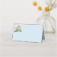Det vikta namn-platskortet visas i pastellblått med ett festive Glad påsk basket tryckt. Anpassa det här objektet eller köp som det är.