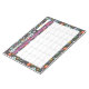 Monthly Planner Notepad with a colorful spring flowers pattern on dark background. Week starts on Sunday.