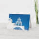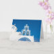 Fotot från fantastisk Getty Bilder visar den berömd staden Oia, med bikoniska, blå kyrkor som bortser från Medelhavet.
