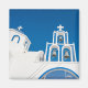 Fotot från fantastisk Getty Bilder visar den berömd staden Oia, med bikoniska, blå kyrkor som bortser från Medelhavet.