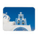 Fotot från fantastisk Getty Bilder visar den berömd staden Oia, med bikoniska, blå kyrkor som bortser från Medelhavet.