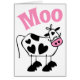Ett bra exempel på en svart och vit ko med ord, "Moo" i rosa ovanför honom. Hans fläckar är hjärtan. Underbar för alla som samlar in koartiklar!