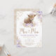 Denna inbjudan till feminininfödelsedag innehåller en ädel höglandskö i baby omgiven av dammig lila blommor, pampasgräs och mutad bohemisk inslag.